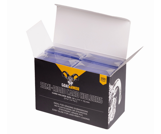 Every card tells a story—keep yours pristine with our premium top loaders and card sleeves. Our sleeves offer a snug, ultra-clear fit, while our rigid top loaders provide maximum defense against scratches, dust, and bends. Whether you're securing rare holo pulls, rookie cards, or vintage favorites, Goat Armor ensures your collection stays protected, organized, and photo-ready.